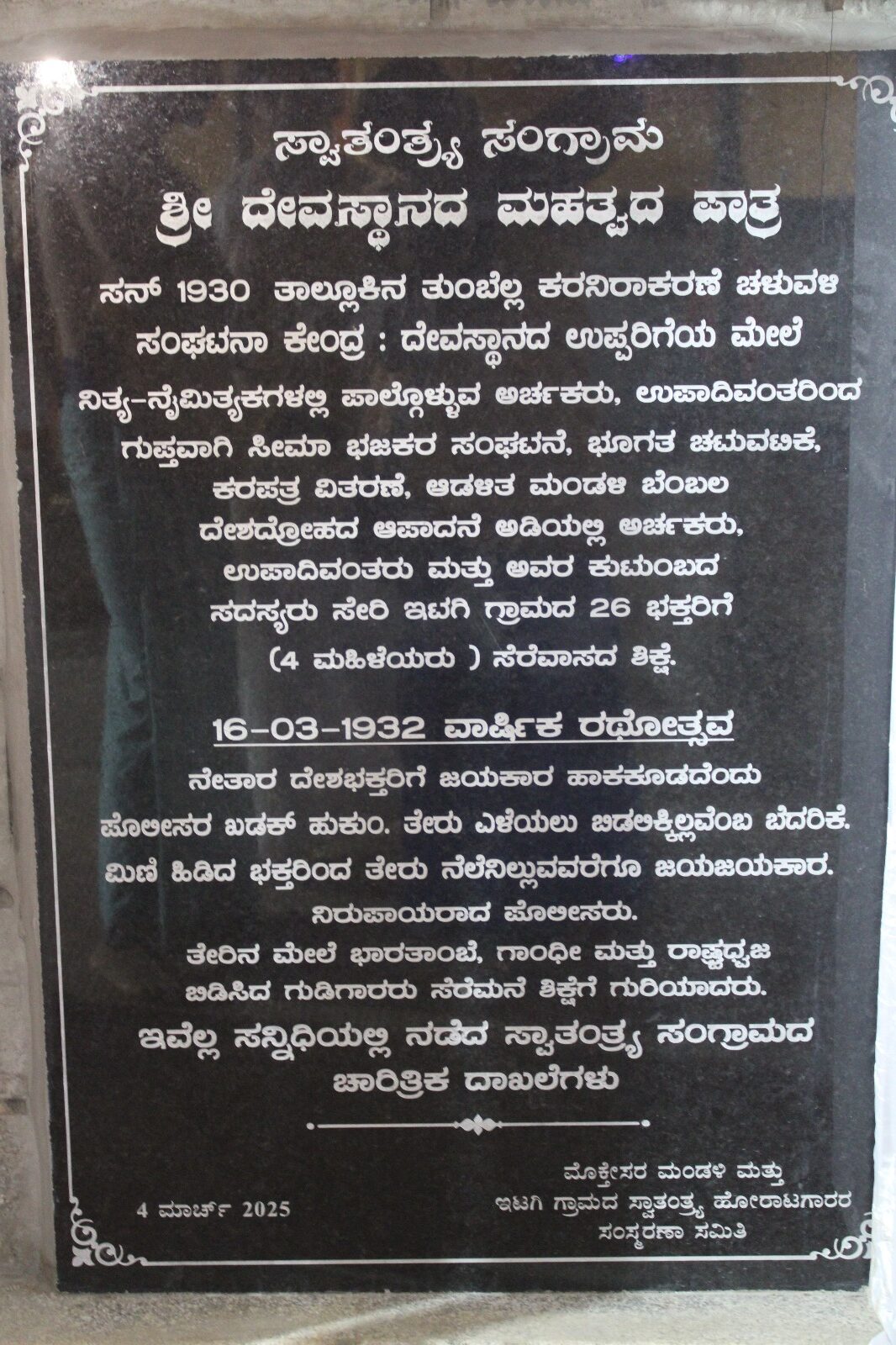 ಭಾರತದ ಸ್ವಾತಂತ್ರ್ಯ ಸಂಗ್ರಾಮದಲ್ಲಿ ಈ ದಿವ್ಯ ಕ್ಷೇತ್ರವು ಸ್ವತಂತ್ರ ಹೋರಾಟಗಾರರಿಗೆ ಕೇಂದ್ರ ಸ್ಥಾನವನ್ನು ನೀಡಿ,ಅವರ ಹೋರಾಟಕ್ಕೆ ಸಹಾಯ ಹಸ್ತವನ್ನು ನೀಡಿತ್ತು.ಈ ಕಾರಣದಿಂದಾಗಿ ಇಟಗಿ ಅಷ್ಟಬಂಧದ ಶುಭ ಸಂದರ್ಭದಲ್ಲಿ ,ಮೋಕ್ತೇಸರ ಮಂಡಳಿ ಮತ್ತು ಇಟಗಿ ಗ್ರಾಮ ಸ್ವಾತಂತ್ರ್ಯ ಹೋರಾಟಗಾರರ ಸಂಸ್ಮರಣಾ ಸಮೀತಿಯವರು ರೂಪಿಸಿದ ಶಿಲಾಫಲಕವನ್ನು ಸಂಸದರ ಉಪಸ್ಥಿತಿಯಲ್ಲಿ ಅನಾವರಣ ಗೊಂಡಿತು.